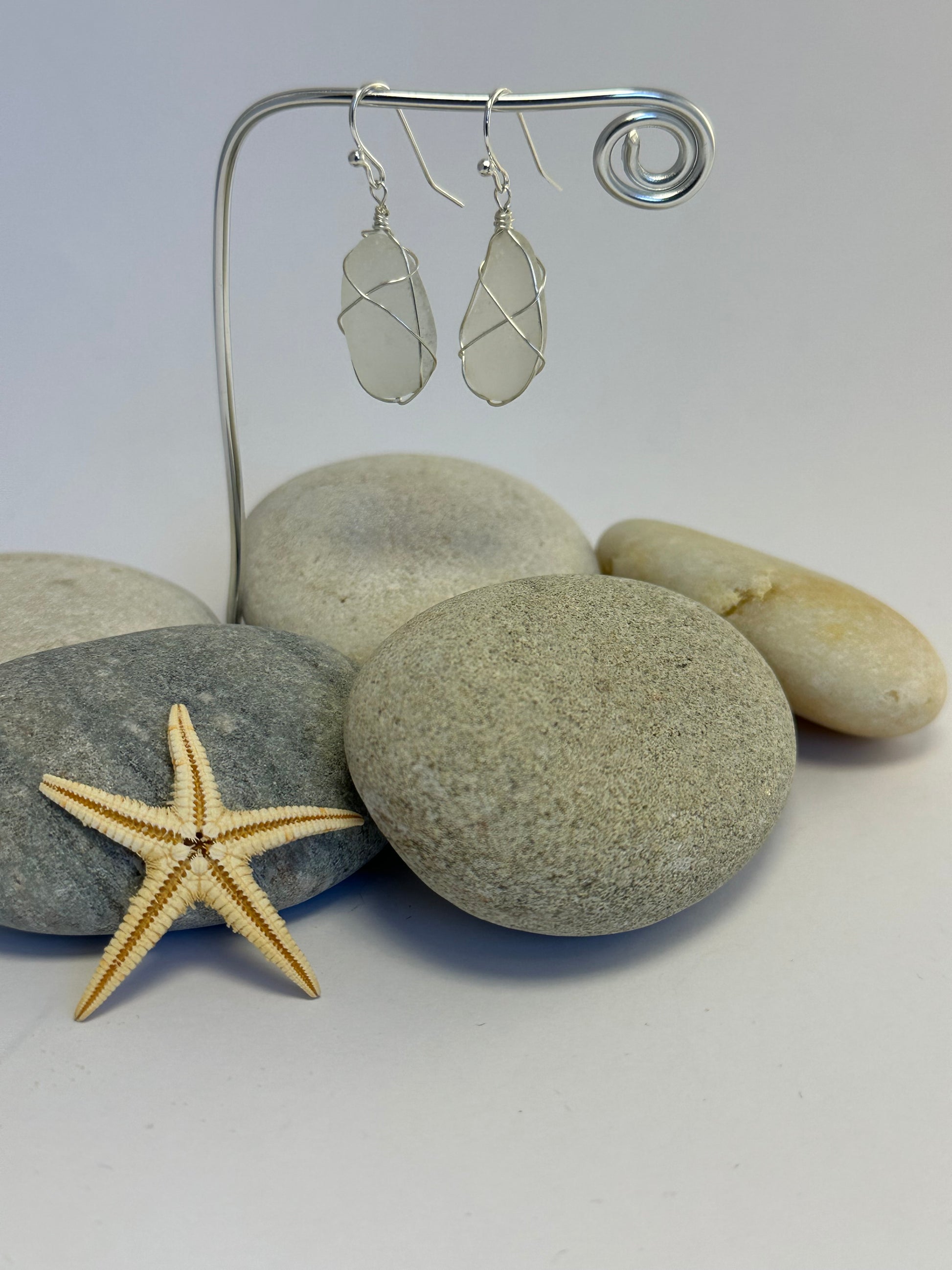 The perfect gift and a way to keep a little bit of the sea with you wherever you go - these beautiful sea glass earrings are made from sea glass found on the Clyde coast in the west of Scotland. Sea glass is formed by the waves, sand and stones shaping and polishing pieces of glass to give the distinctive smoothed & frosted appearance. Each piece of sea glass is unique, hand picked by me on the beaches that I visit then polished and transformed in to jewellery using wire wrapping techniques with recycled sterling silver wire.